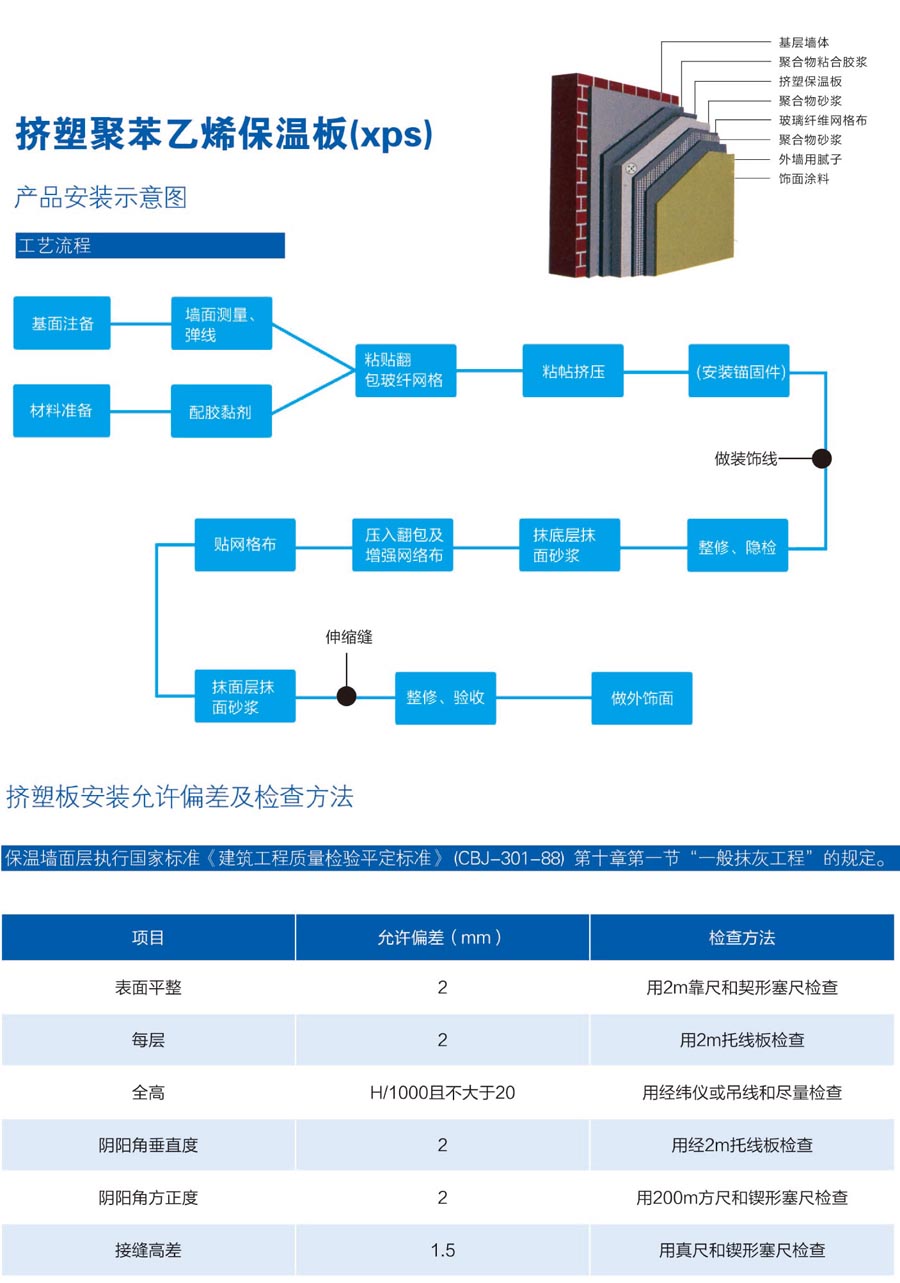 擠塑聚苯乙烯保溫板(XPS)是以聚 苯乙烯樹(shù)脂為原料,經(jīng)由特殊工藝連續(xù) 擠出發(fā)泡成型的硬質(zhì)板材。其內(nèi)部為獨(dú) 立 的 密 閉 式 氣 泡 結(jié) 構(gòu) 是 一 種 具 有 高 抗 壓、不吸水、防潮,不透氣、輕質(zhì)耐腐蝕, 使用壽命長(zhǎng)、導(dǎo)熱系數(shù)低等優(yōu)異性能的 環(huán)保材料。 擠塑聚苯乙烯保溫板(XPS)廣泛應(yīng) 用于墻體保溫,平面混凝土屋頂及鋼結(jié) 構(gòu)屋頂?shù)谋兀蜏貎?chǔ)藏、地面、泊車(chē) 平臺(tái),機(jī)場(chǎng)跑道、高速公路等領(lǐng)域的防 潮保溫、控制地面膨脹是目前建筑業(yè)界 **物美價(jià)廉的隔熱、防潮材料。